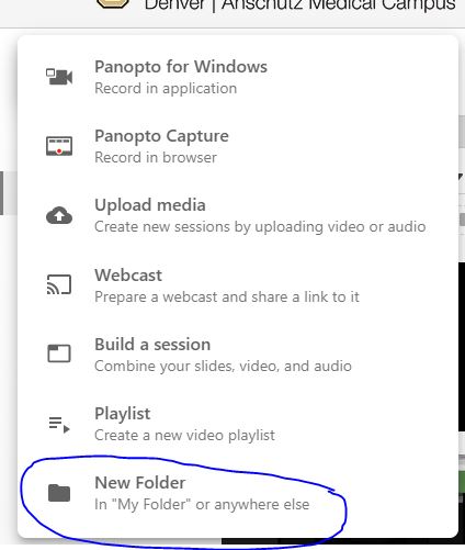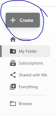 2. Click the Create button - > New Folder. Name the folder after your class. This is where your videos will go.