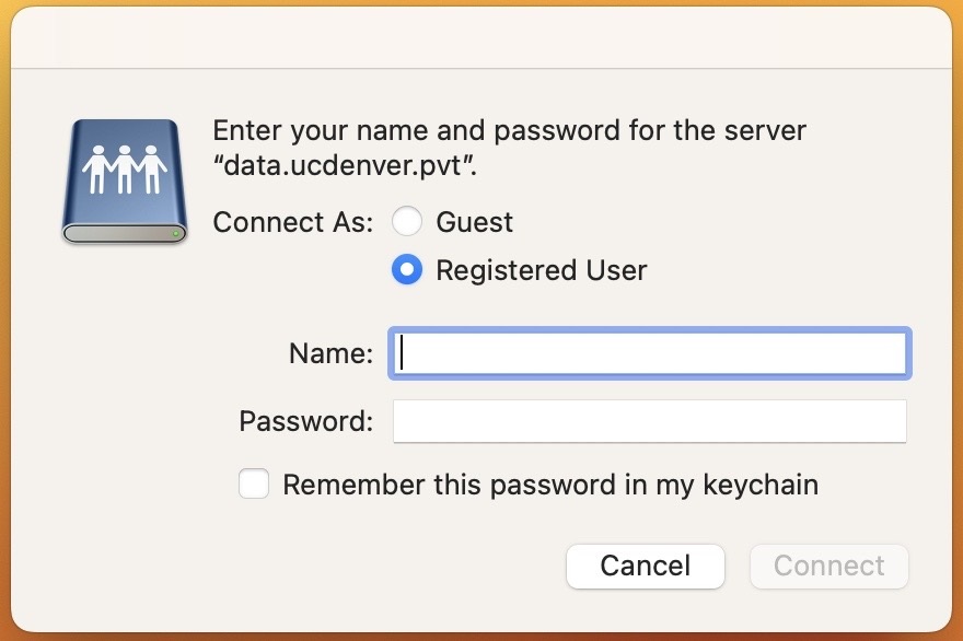 - smb://data.ucdenver.pvt/home/username (your CU Denver Username) (most people no longer use this and instead are using onedrive)